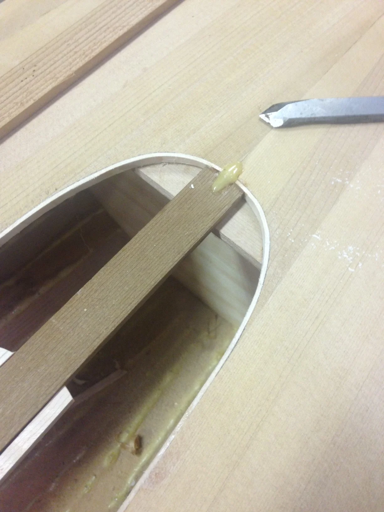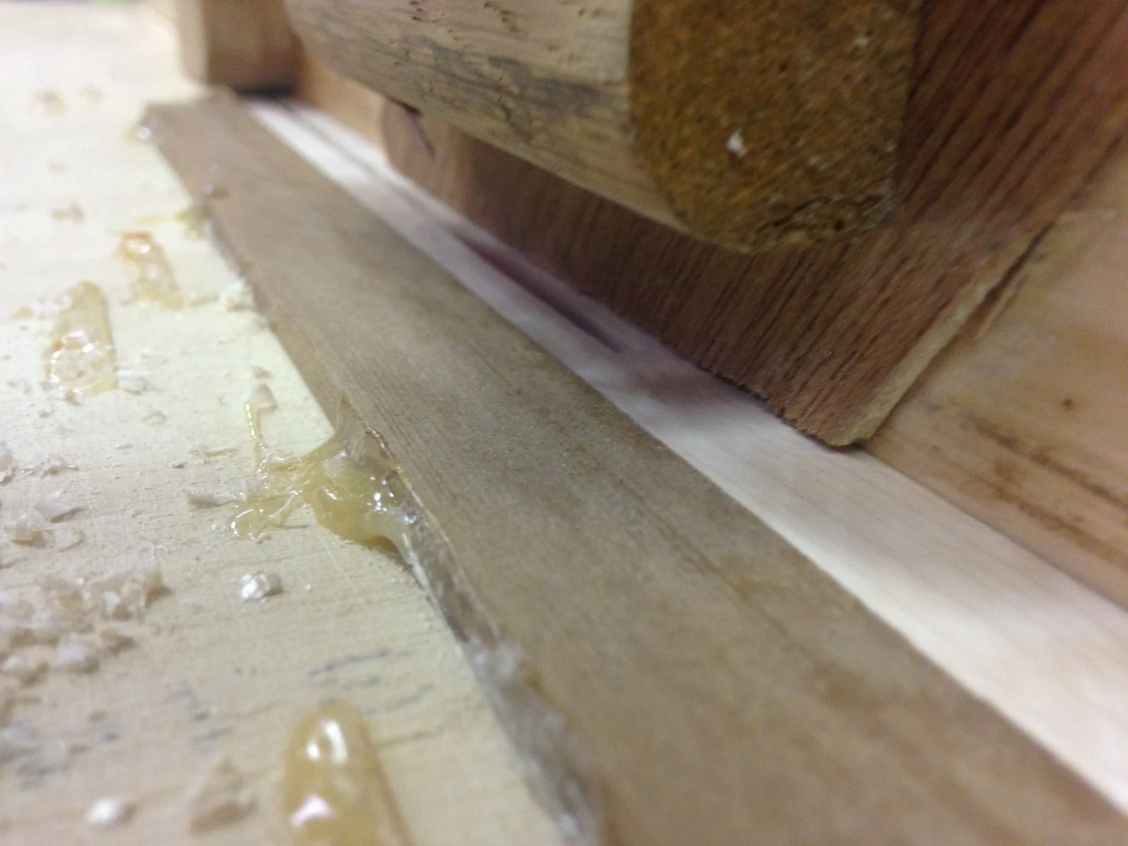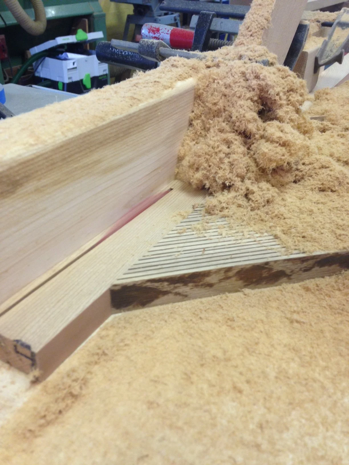 Here I've scrapped away 99% of the excess glue. Not bad fitting joints!