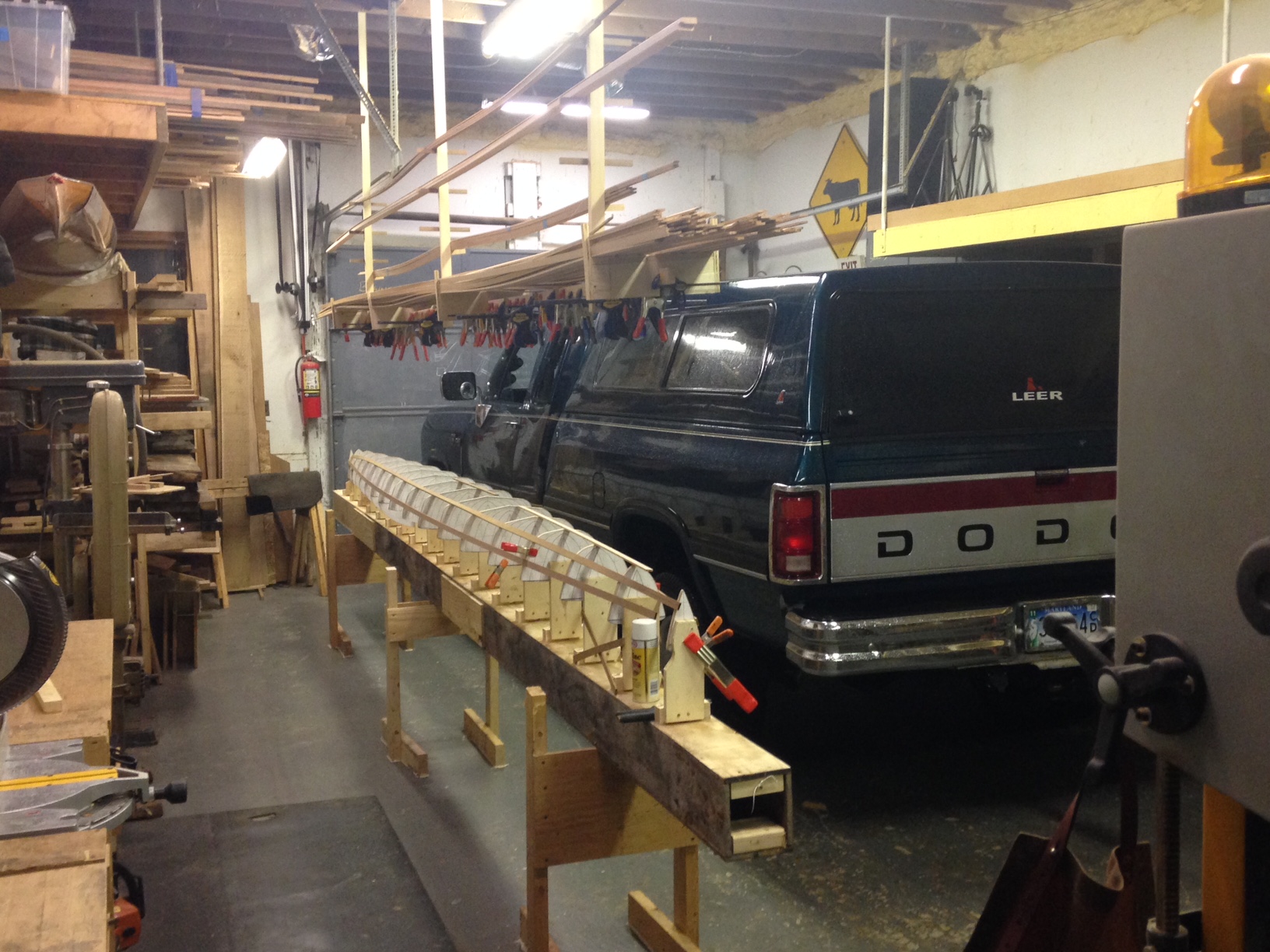 I'll be heading out of town for New Years so I don't think I'll see much progress over the next week. With the shop clean, and strips neatly stacked on my new rack, I even had room for the old dodge to park inside out of the rain for a few days!