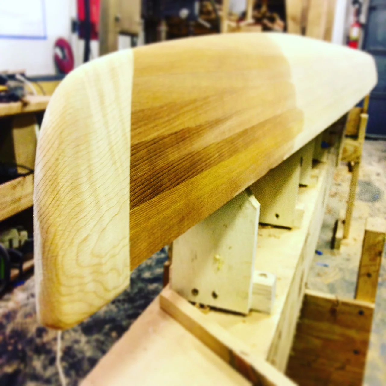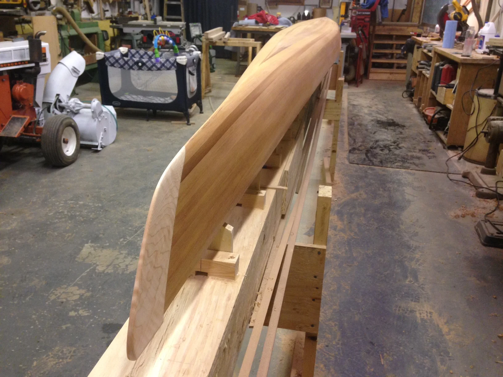 Keep in mind that the maple pieces are still rough, no sense in fine tuning them at this point as I'll need to profile the entire hull once the strips are in place.