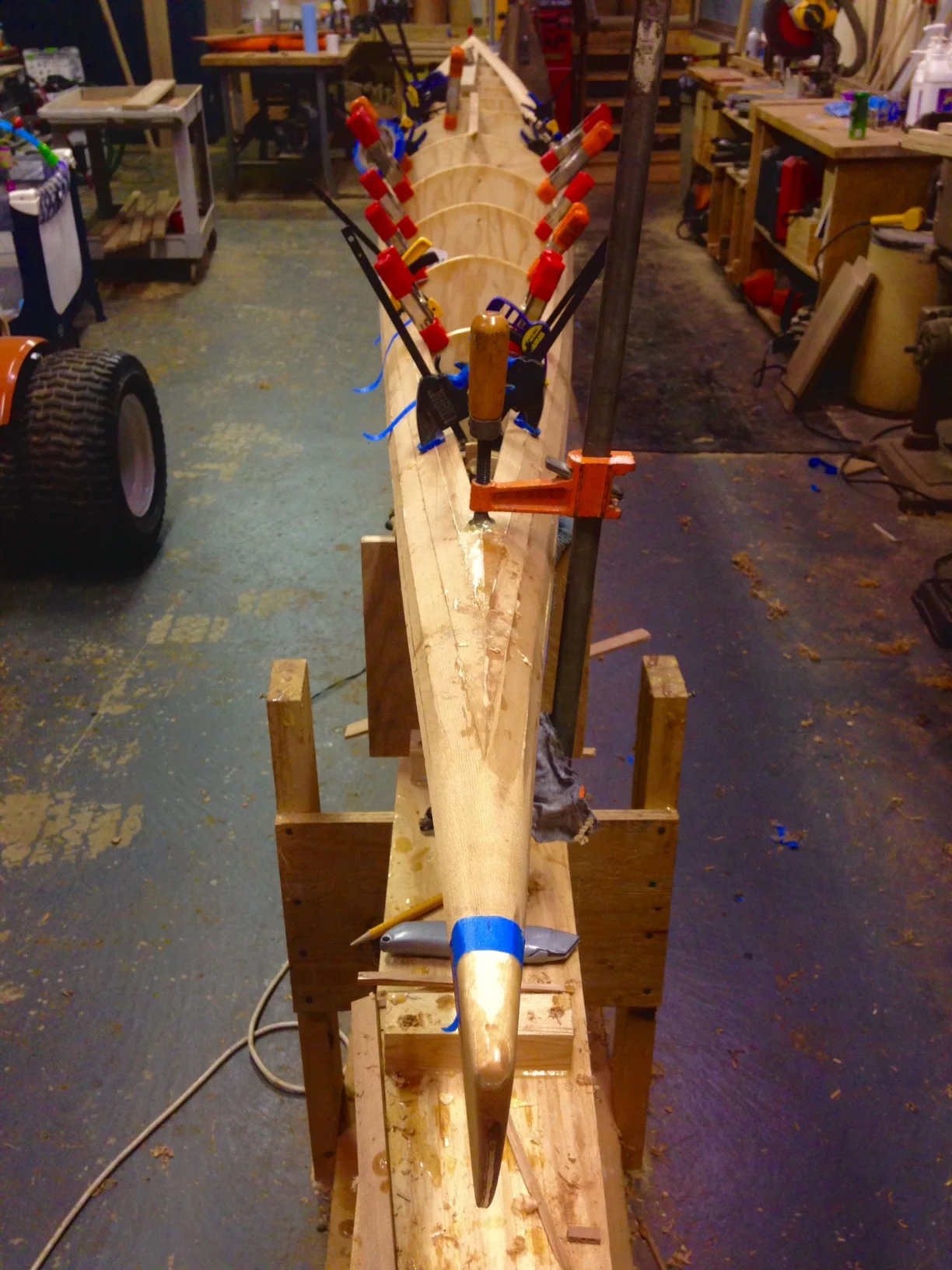 The second side will go a little slower, each strip will have to fit perfectly again, creating the keel.