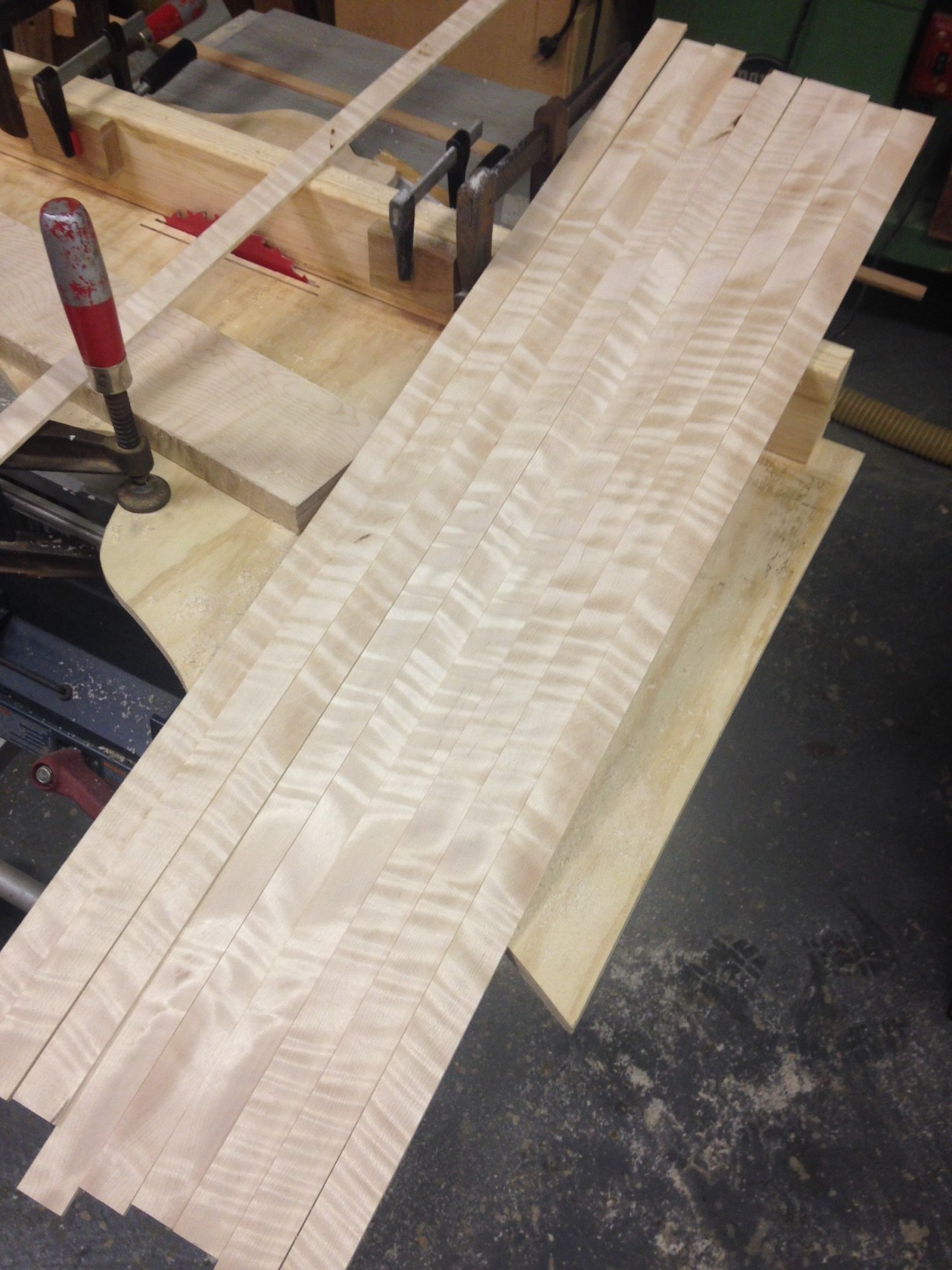 Now on to making strips out of the same curly maple. Cutting them will prove to be the easy part of this!