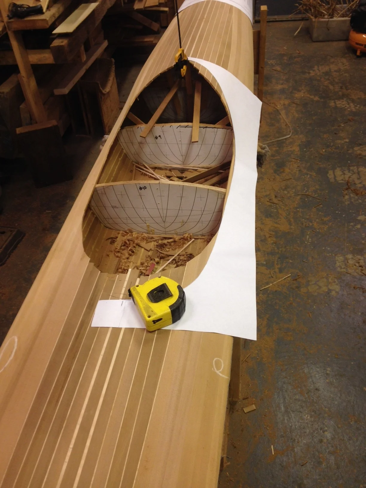 I laid the paper on the cockpit opening and used a pencil to trace it on the cedar. I flipped the paper for get the second side, to ensure symmetry.